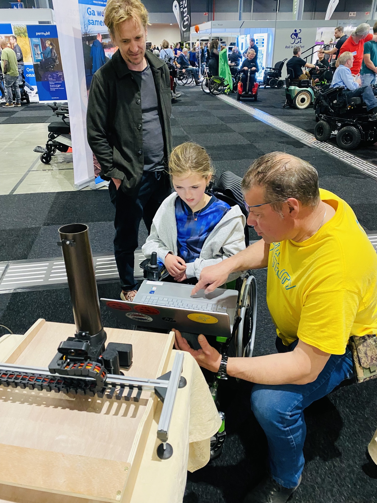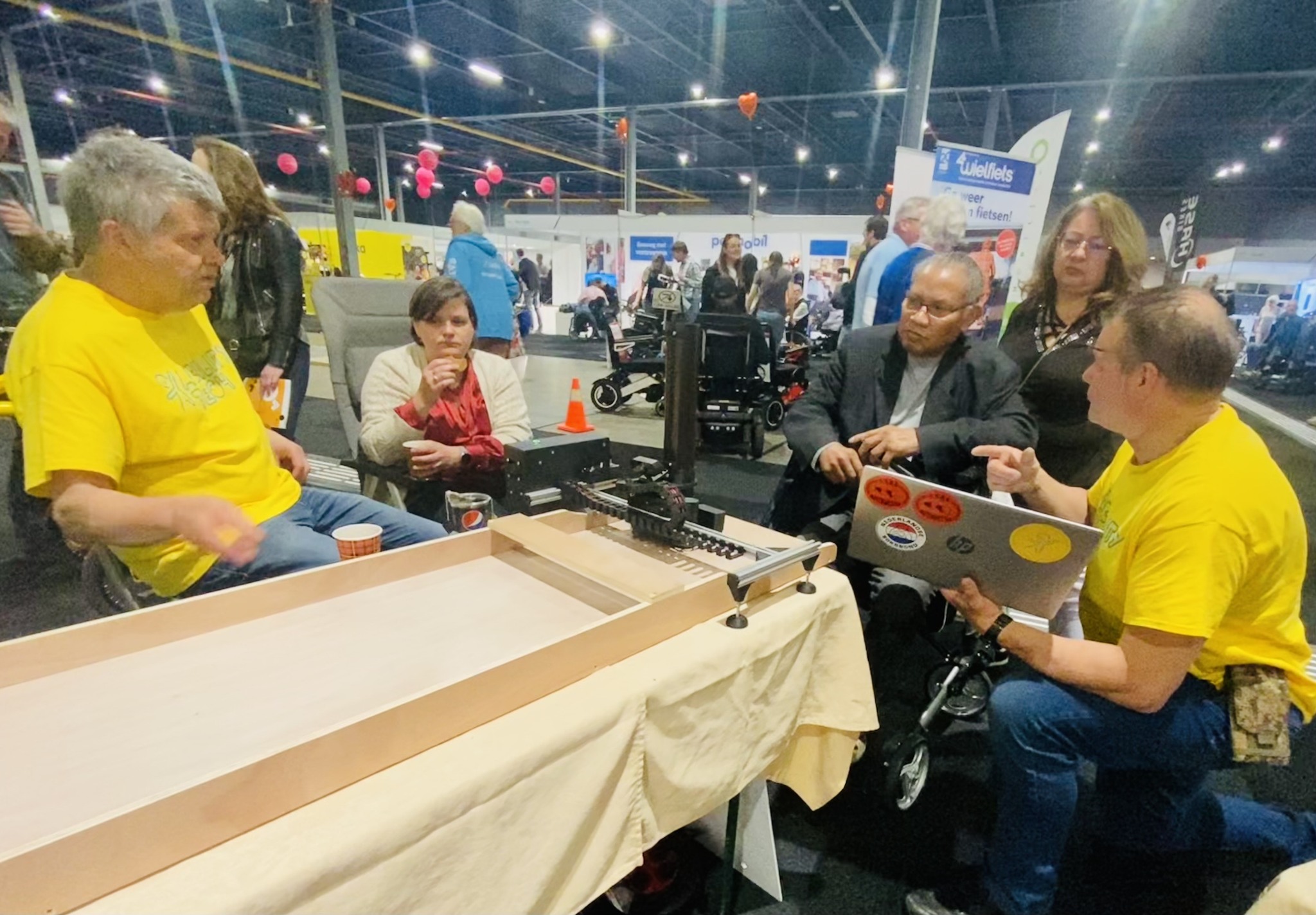 Deze keer ging ik mee met de mensen van Ability Tech om mee te helpen met het demonstreren van de oogbestuurde robot-sjoelbak. Natuurlijk vertelden we ook ove da andere dingen die bij Ability Tech gebeuren, zoals de oogebestuurde rolstoel en de jas-aantrekhulp.